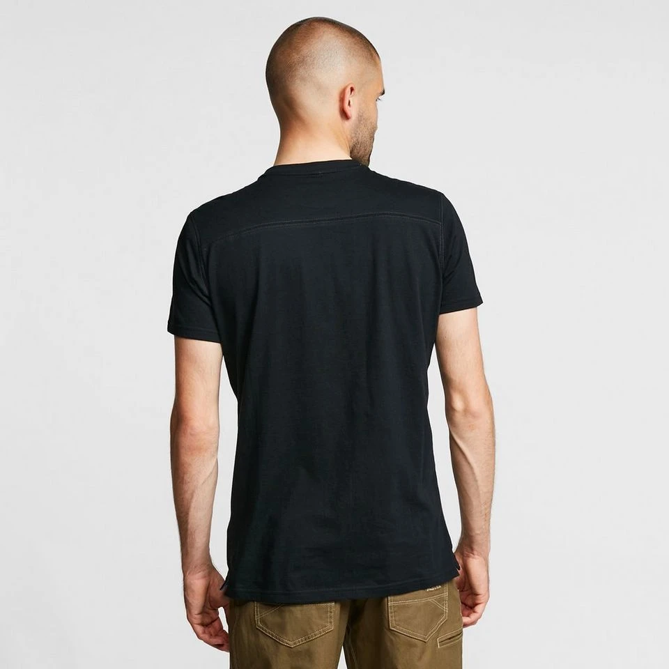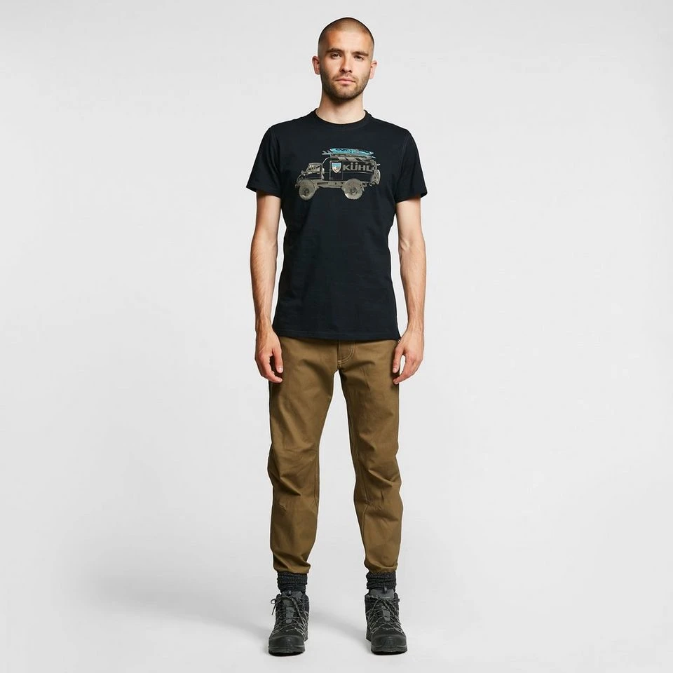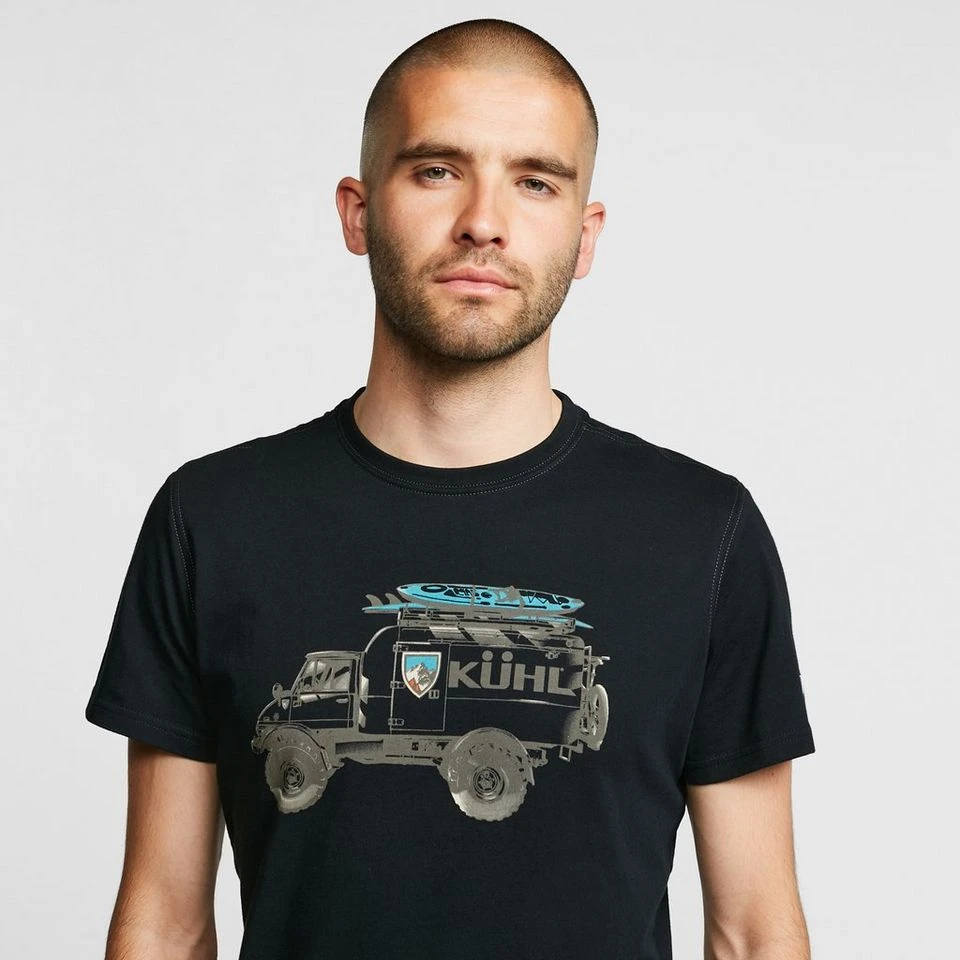 This breathable cotton tee has a crew neck and features a large Kuhl motif across the chest. Ideal for casual strolls and travel adventures.
