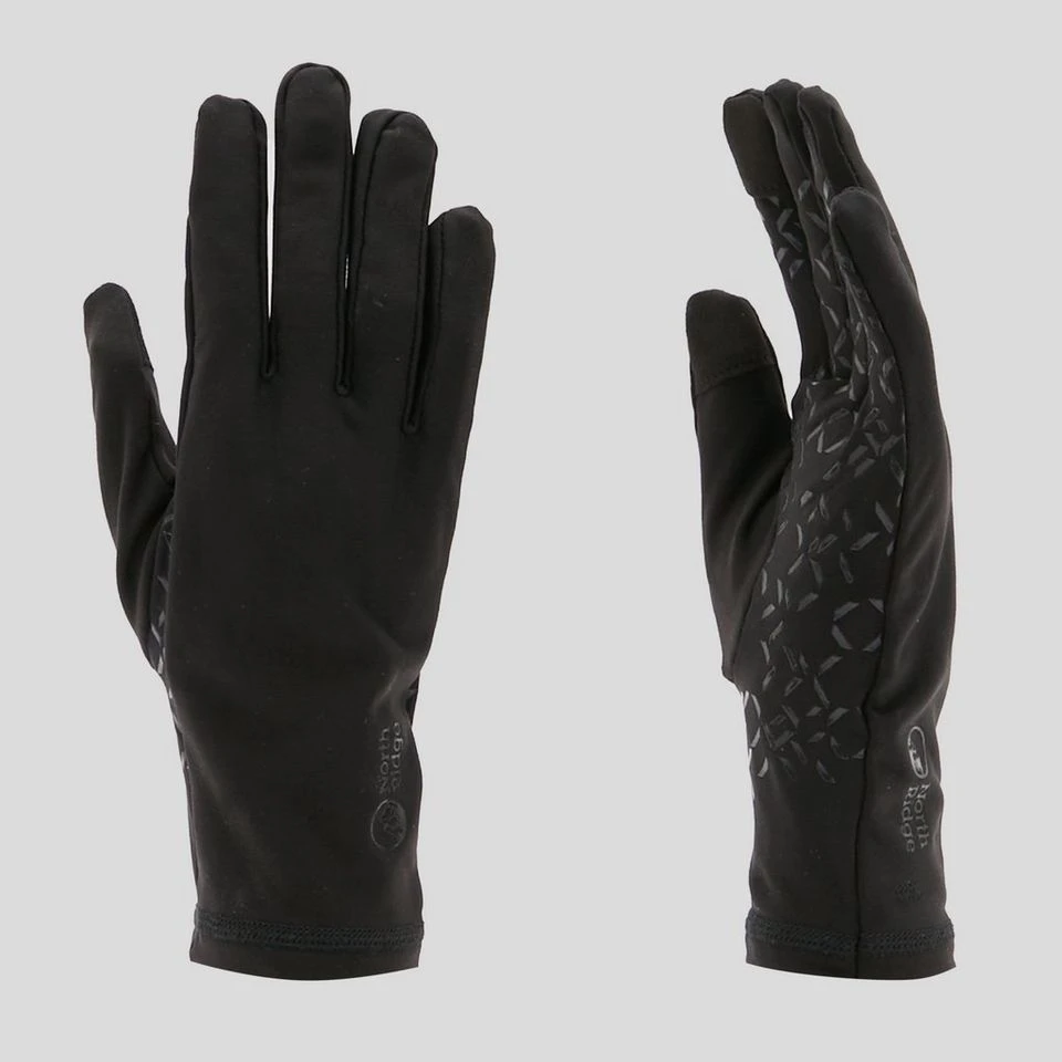 A pair of stretchy, touch-screen compatible winter gloves with gel palms for easy walking pole grip.
